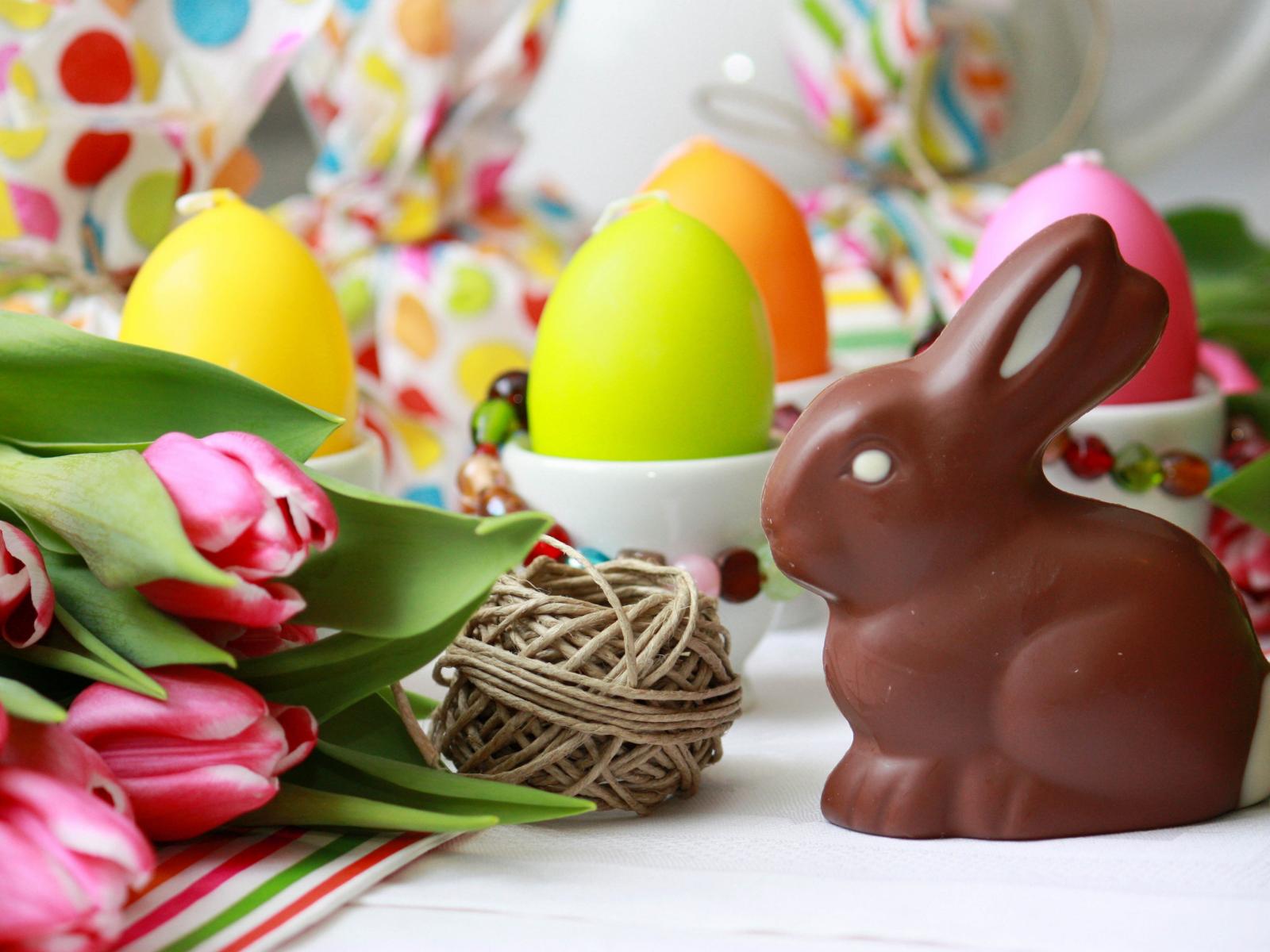 Обои Шоколадный пасхальный кролик и тюльпаны