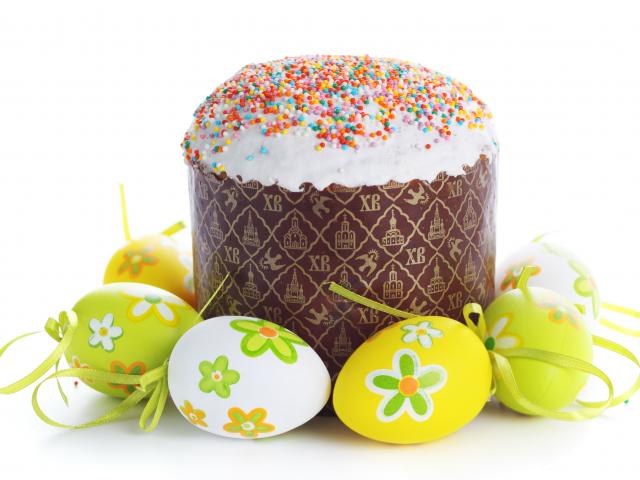 Обои Красивый пасхальный кулич с яйцами на белом фоне