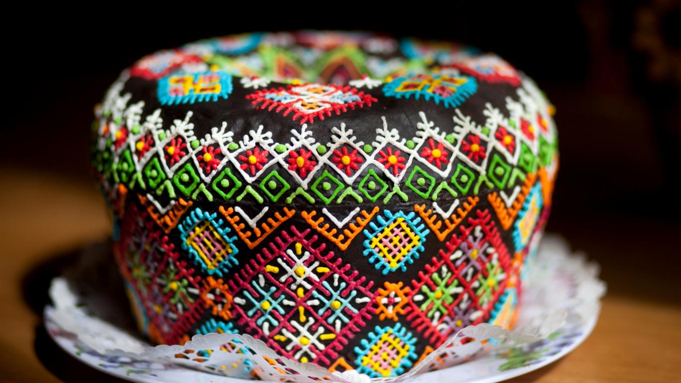 Обои Красивый дизайнерский пасхальный кулич на праздник Пасха