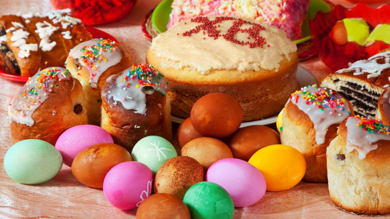 Обои Вкусные пасхальные угощения на столе к празднику Пасха