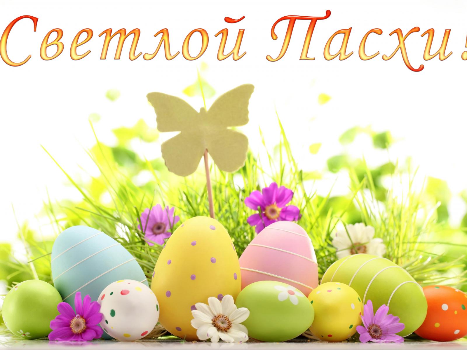 Обои Открытка Светлой Пасхи с крашеными яйцами