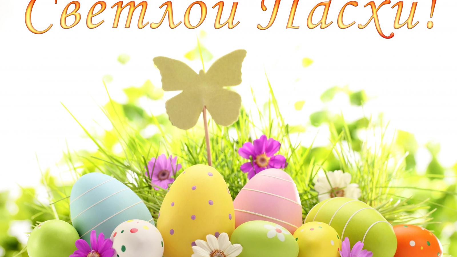 Обои Открытка Светлой Пасхи с крашеными яйцами