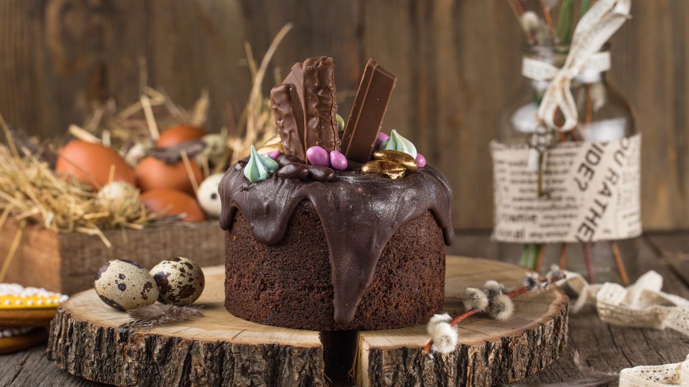 Обои Пасхальный кулич с шоколадной глазурью и сладостями на праздник Пасха
