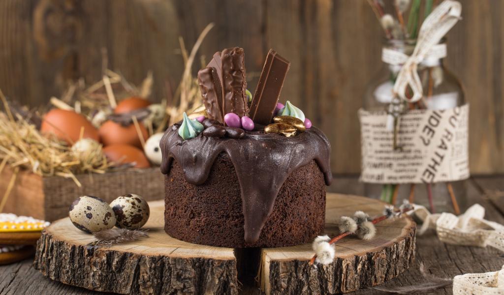 Обои Пасхальный кулич с шоколадной глазурью и сладостями на праздник Пасха