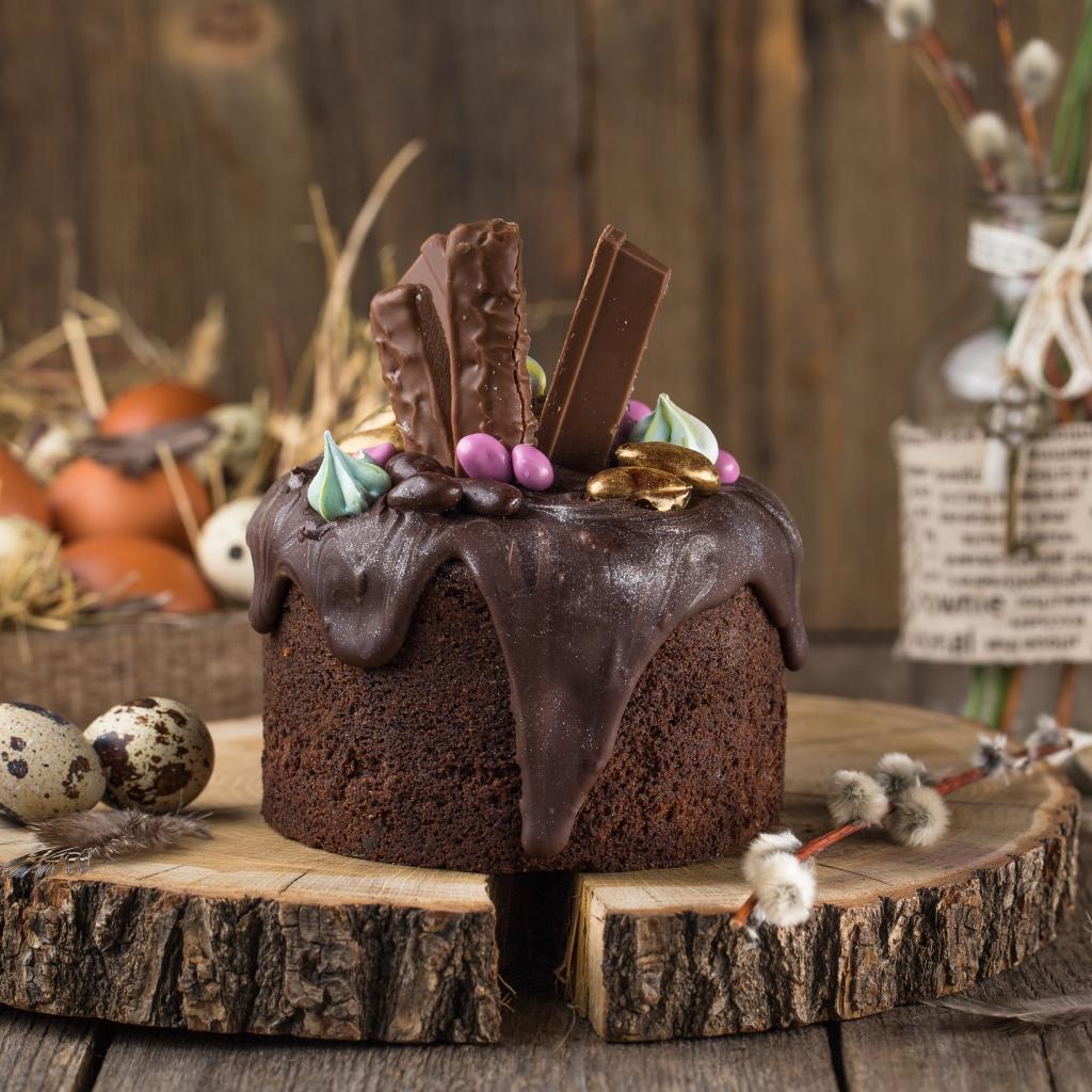 Обои Пасхальный кулич с шоколадной глазурью и сладостями на праздник Пасха