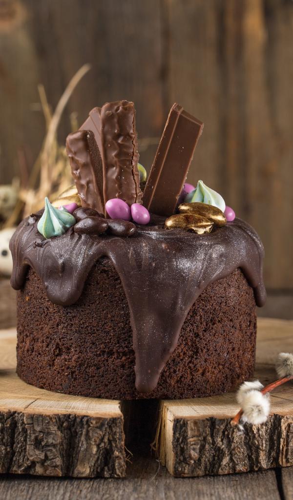 Обои Пасхальный кулич с шоколадной глазурью и сладостями на праздник Пасха