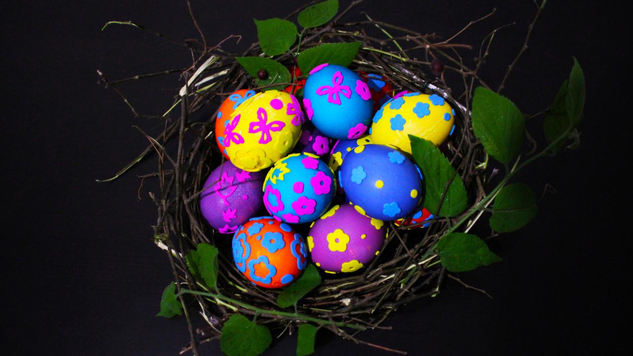 Обои Красивые разноцветные яйца в гнезде на праздник Пасха