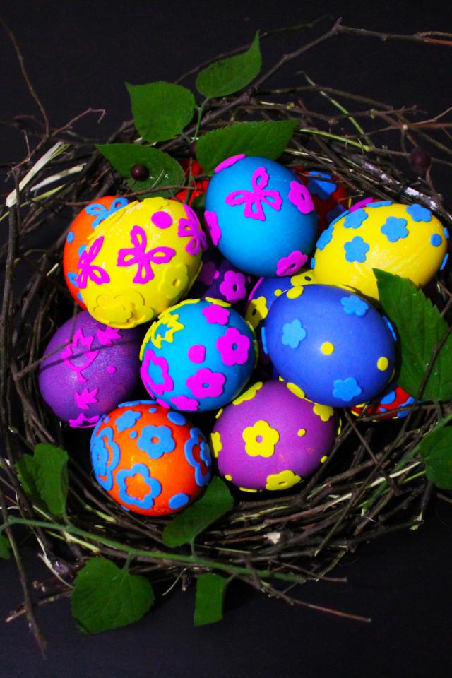 Обои Красивые разноцветные яйца в гнезде на праздник Пасха