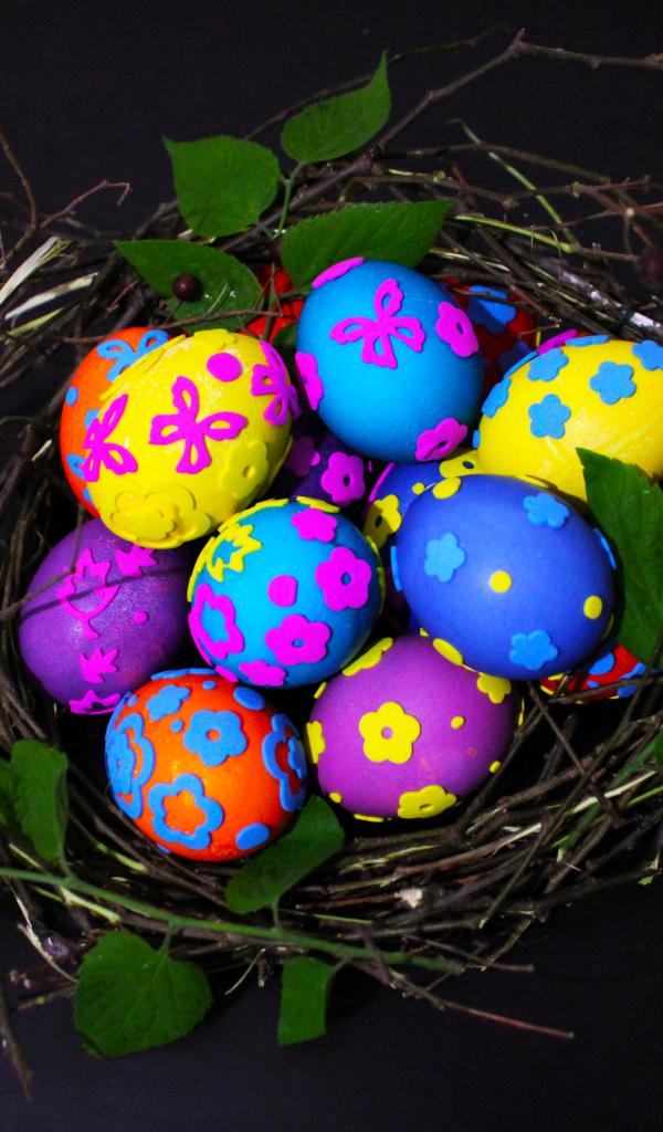 Обои Красивые разноцветные яйца в гнезде на праздник Пасха
