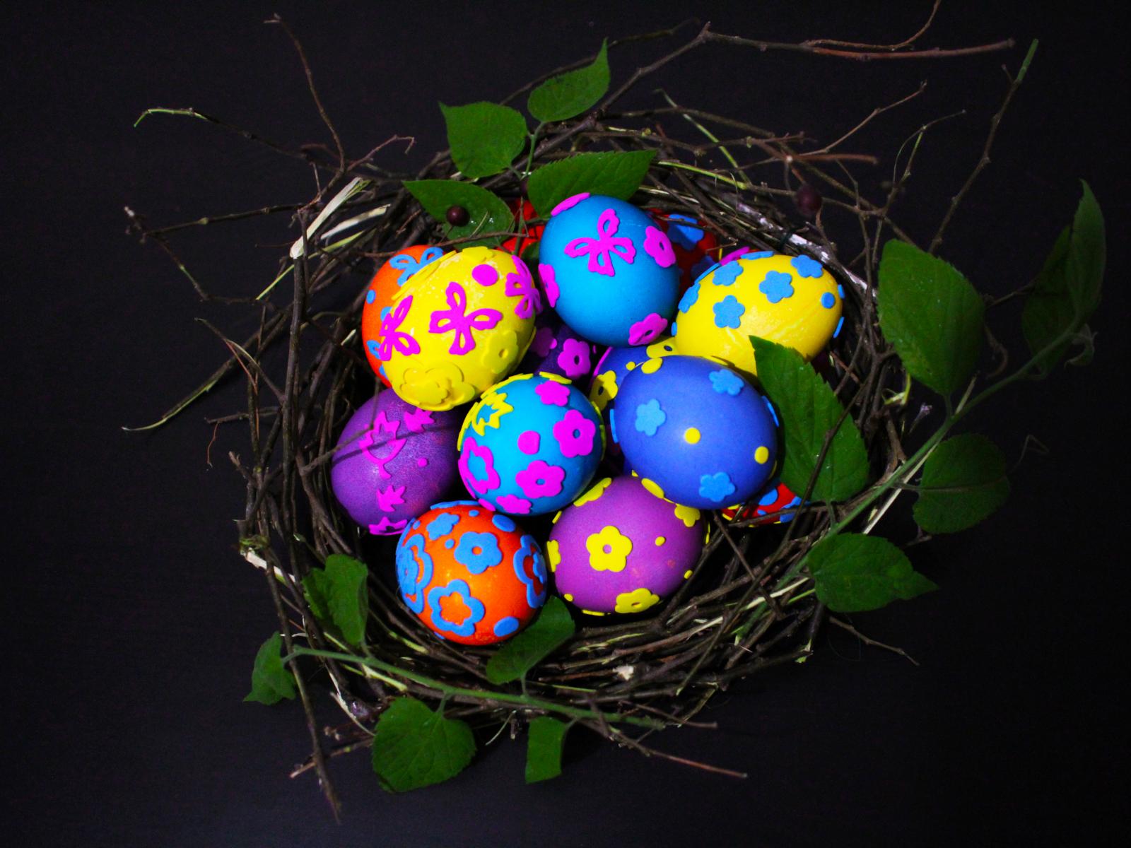 Обои Красивые разноцветные яйца в гнезде на праздник Пасха