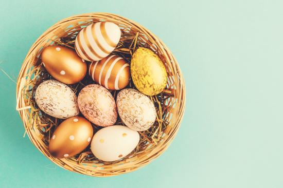 Обои Гнездо с золотистыми крашеными яйцами на Пасху