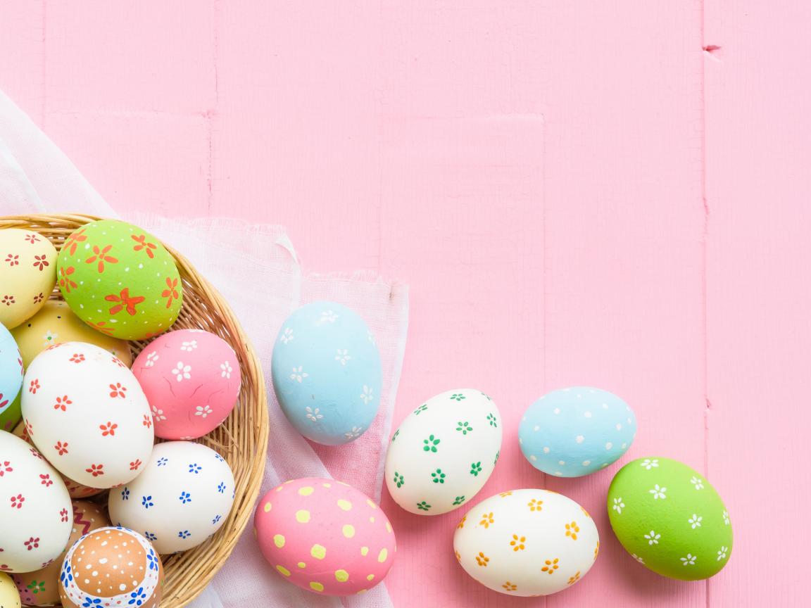 Обои Разноцветные пасхальные яйца на розовом фоне