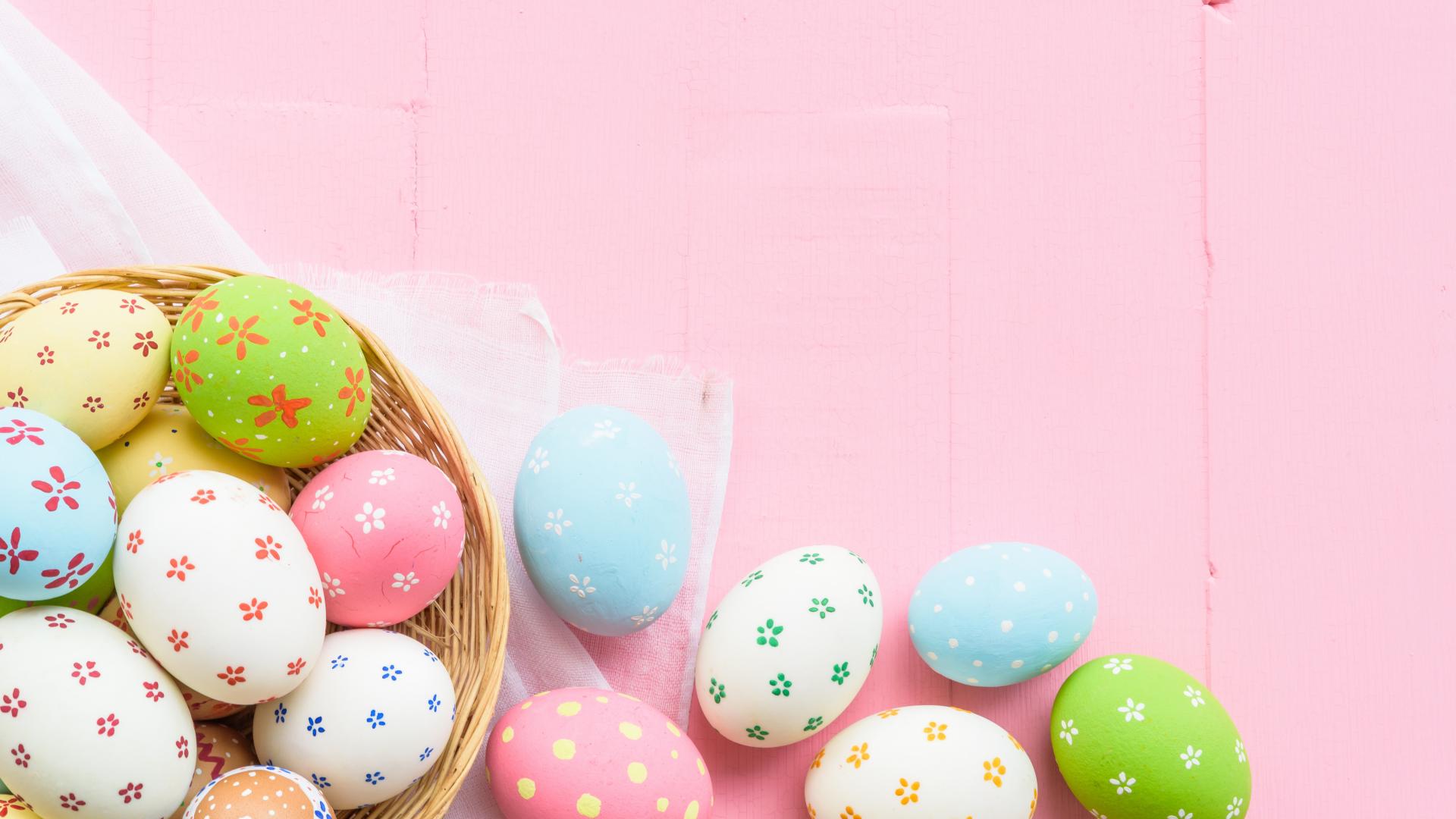 Обои Разноцветные пасхальные яйца на розовом фоне