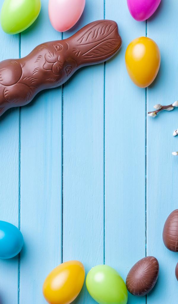 Обои Шоколадные пасхальные сладости на голубом фоне