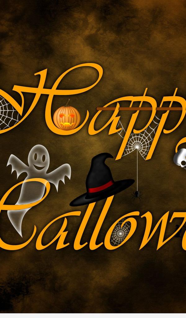 Обои Надпись Счастливого Хэллоуина на оранжевом фоне