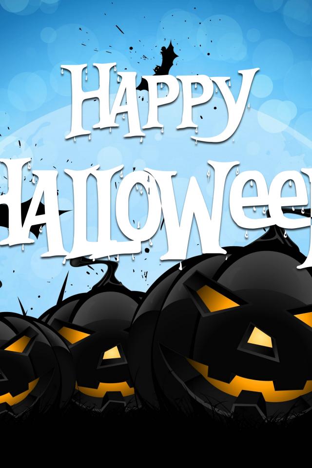 Обои Черные тыквы на голубом фоне, Счастливого Хэллоуина