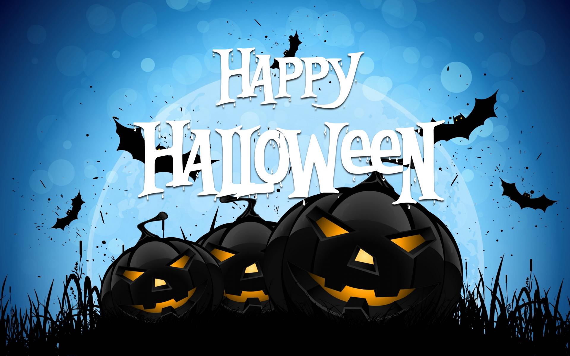 Обои Черные тыквы на голубом фоне, Счастливого Хэллоуина