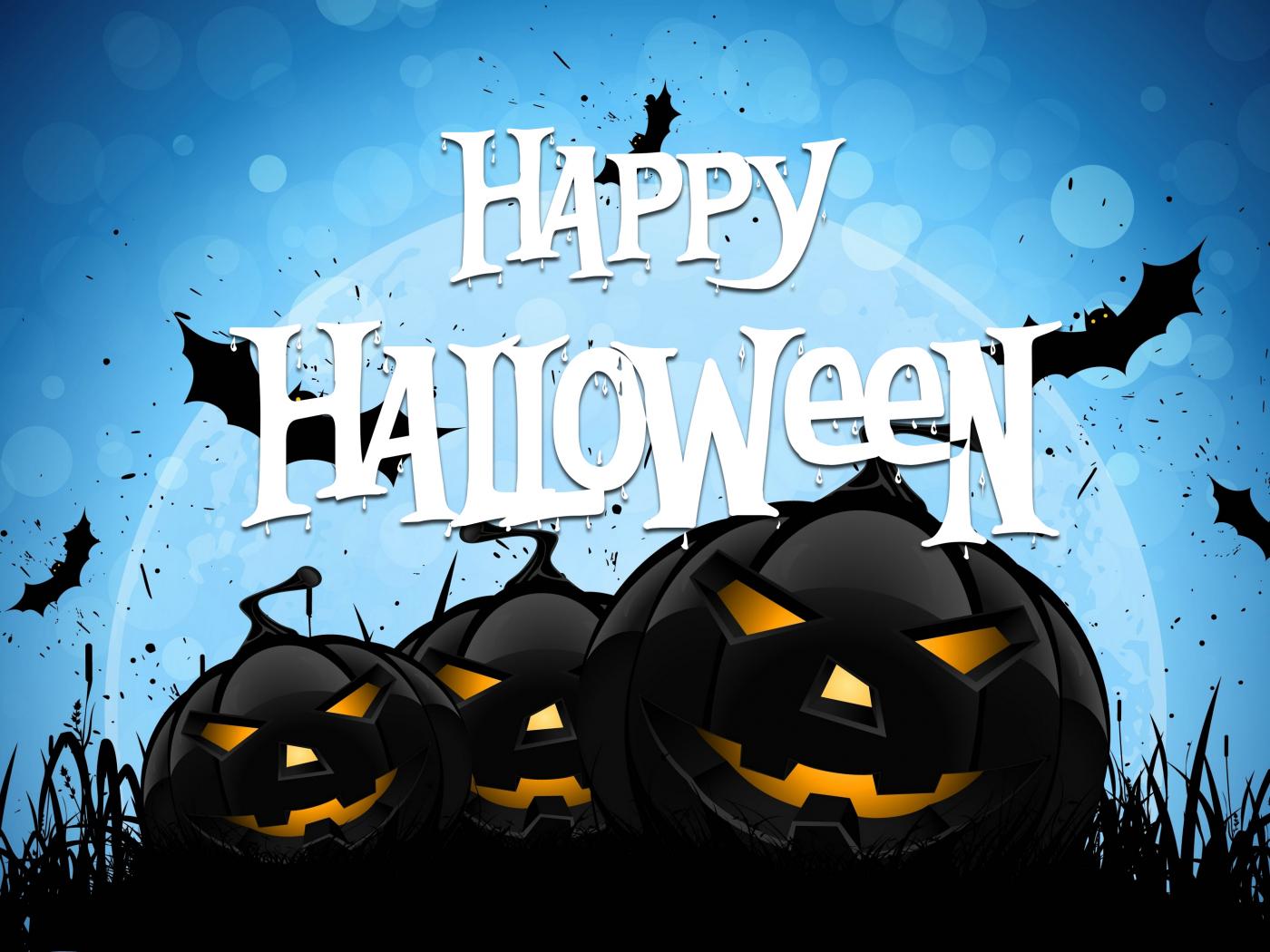 Обои Черные тыквы на голубом фоне, Счастливого Хэллоуина
