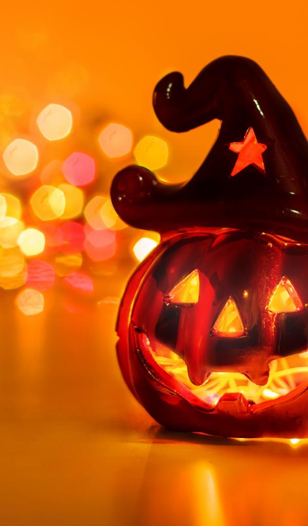 Обои Тыква с зажженной свечой на праздник Хэллоуин