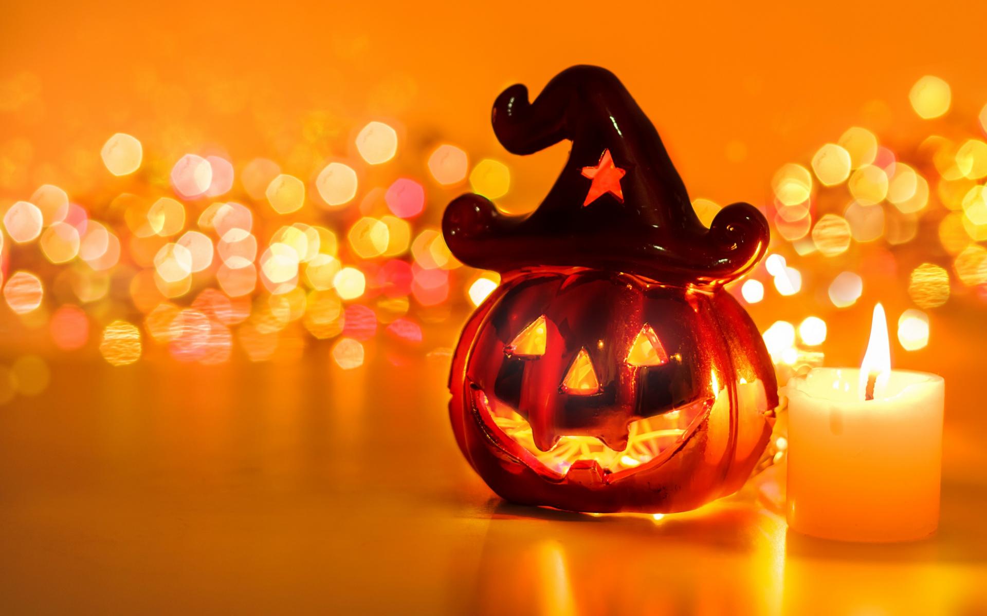 Обои Тыква с зажженной свечой на праздник Хэллоуин