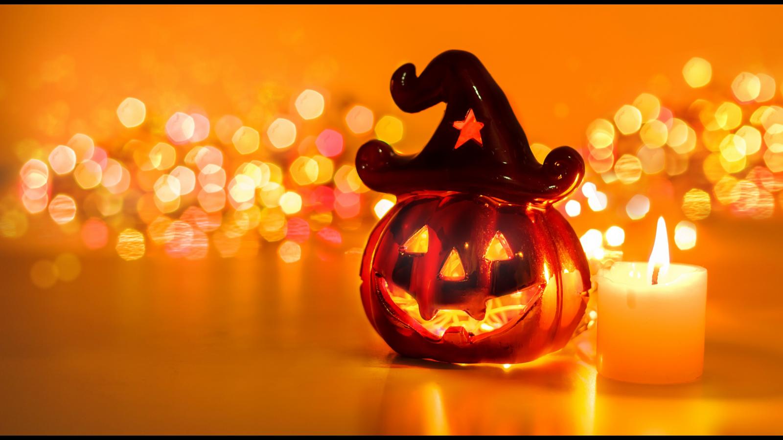 Обои Тыква с зажженной свечой на праздник Хэллоуин