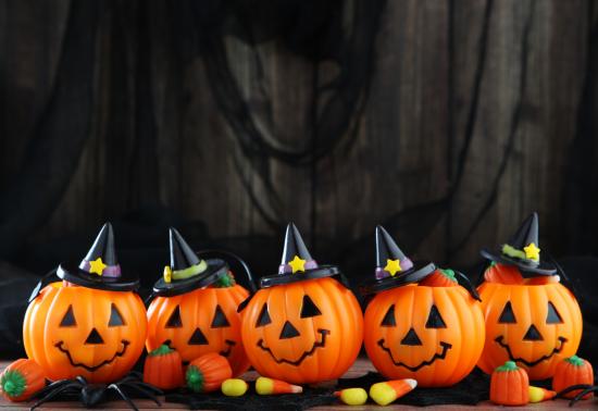Обои Маленькие тыквы со сладостями на Хэллоуин