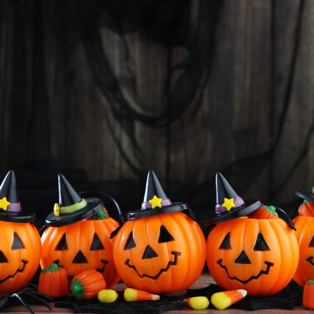 Обои Маленькие тыквы со сладостями на Хэллоуин