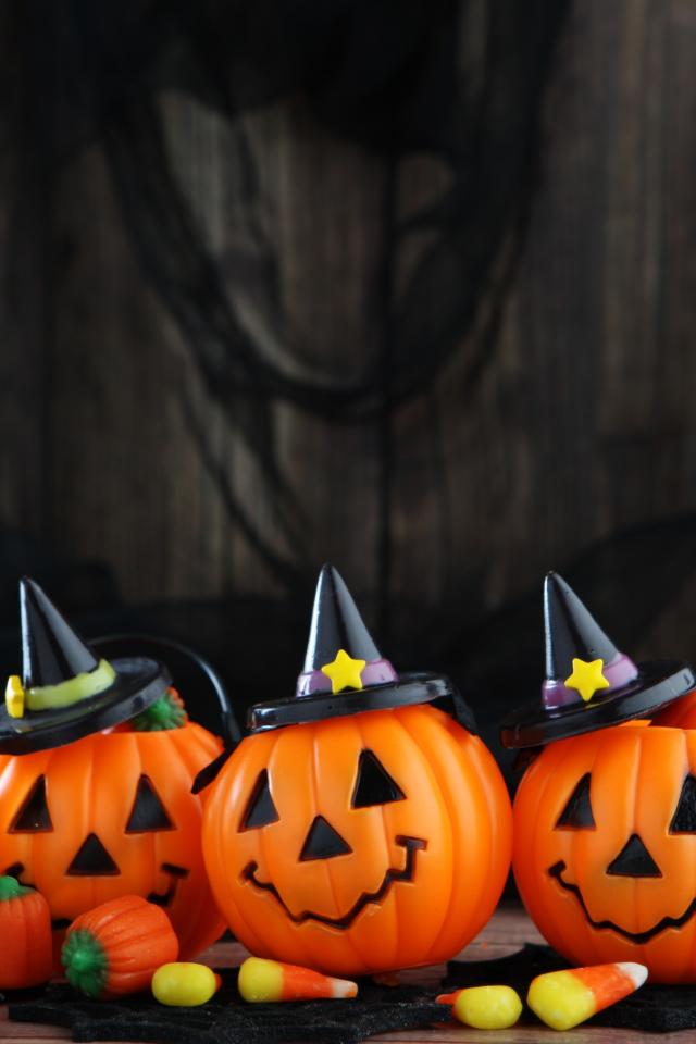 Обои Маленькие тыквы со сладостями на Хэллоуин