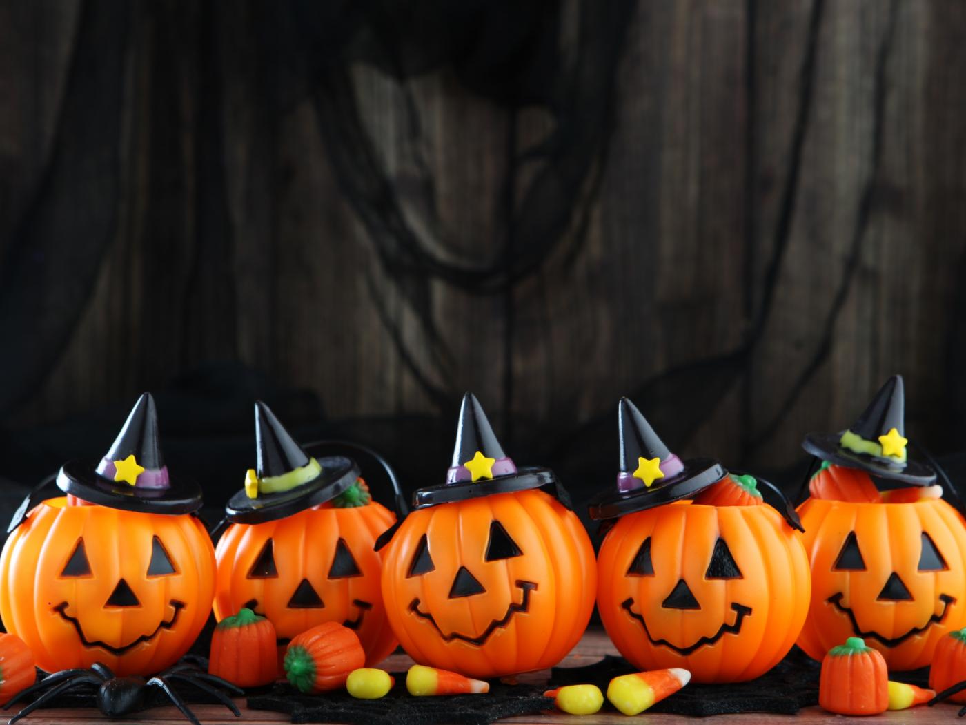 Обои Маленькие тыквы со сладостями на Хэллоуин