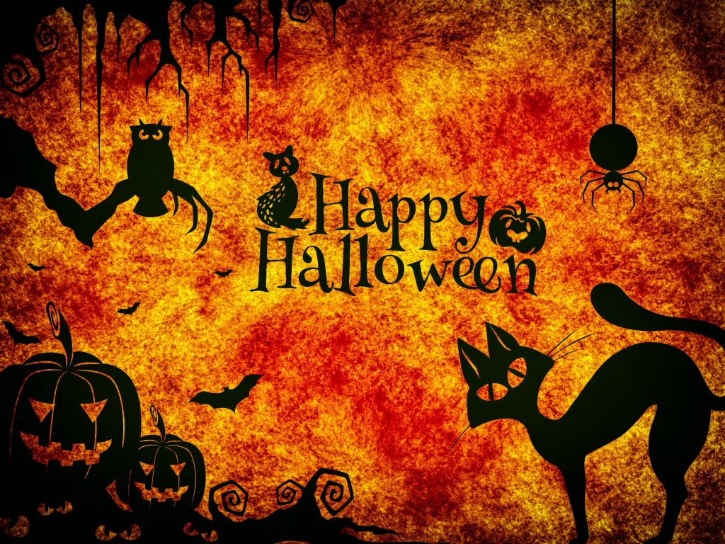 Обои Надпись Счастливого Хэллоуина на оранжевом фоне