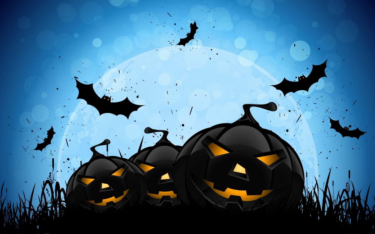 Обои Черные тыквы на голубом фоне с луной