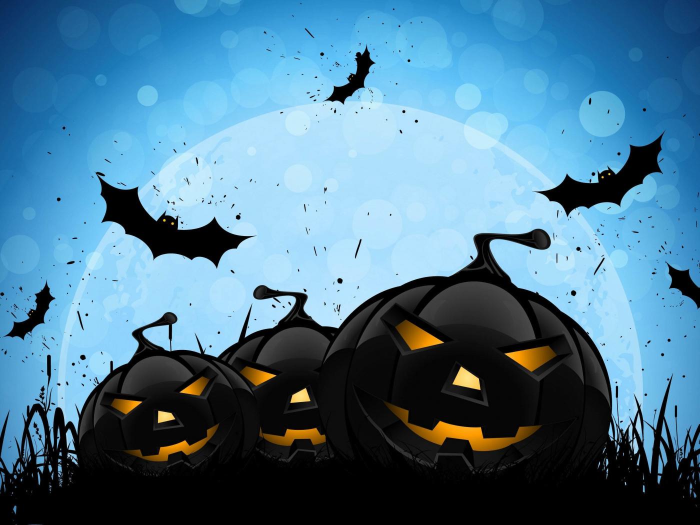 Обои Черные тыквы на голубом фоне с луной