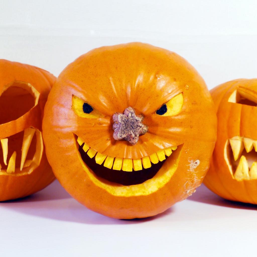 Обои Зловещие тыквы на белом фоне на Хэллоуин