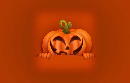 Обои Улыбающаяся тыква на оранжевом фоне на Хэллоуин