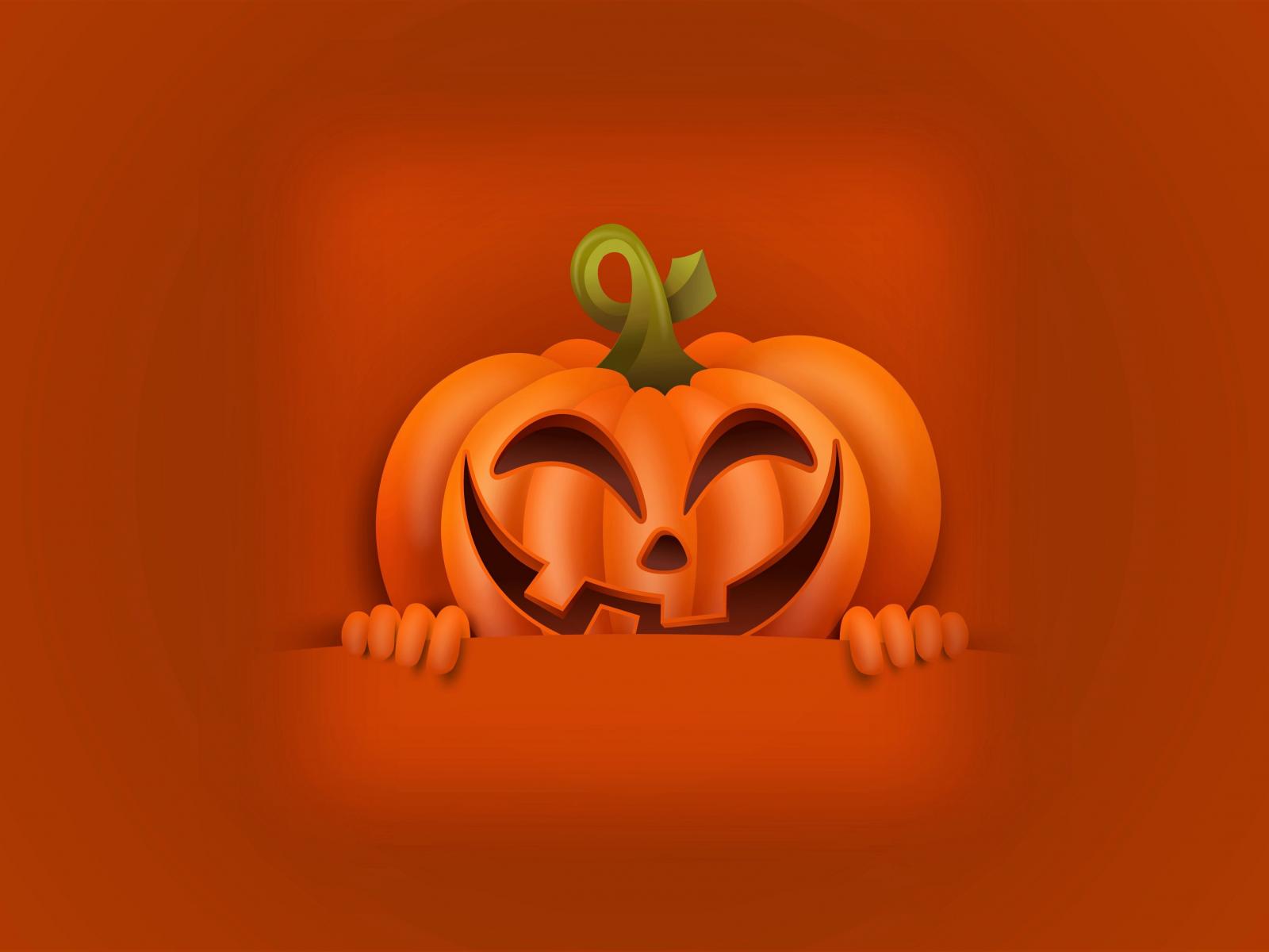 Обои Улыбающаяся тыква на оранжевом фоне на Хэллоуин
