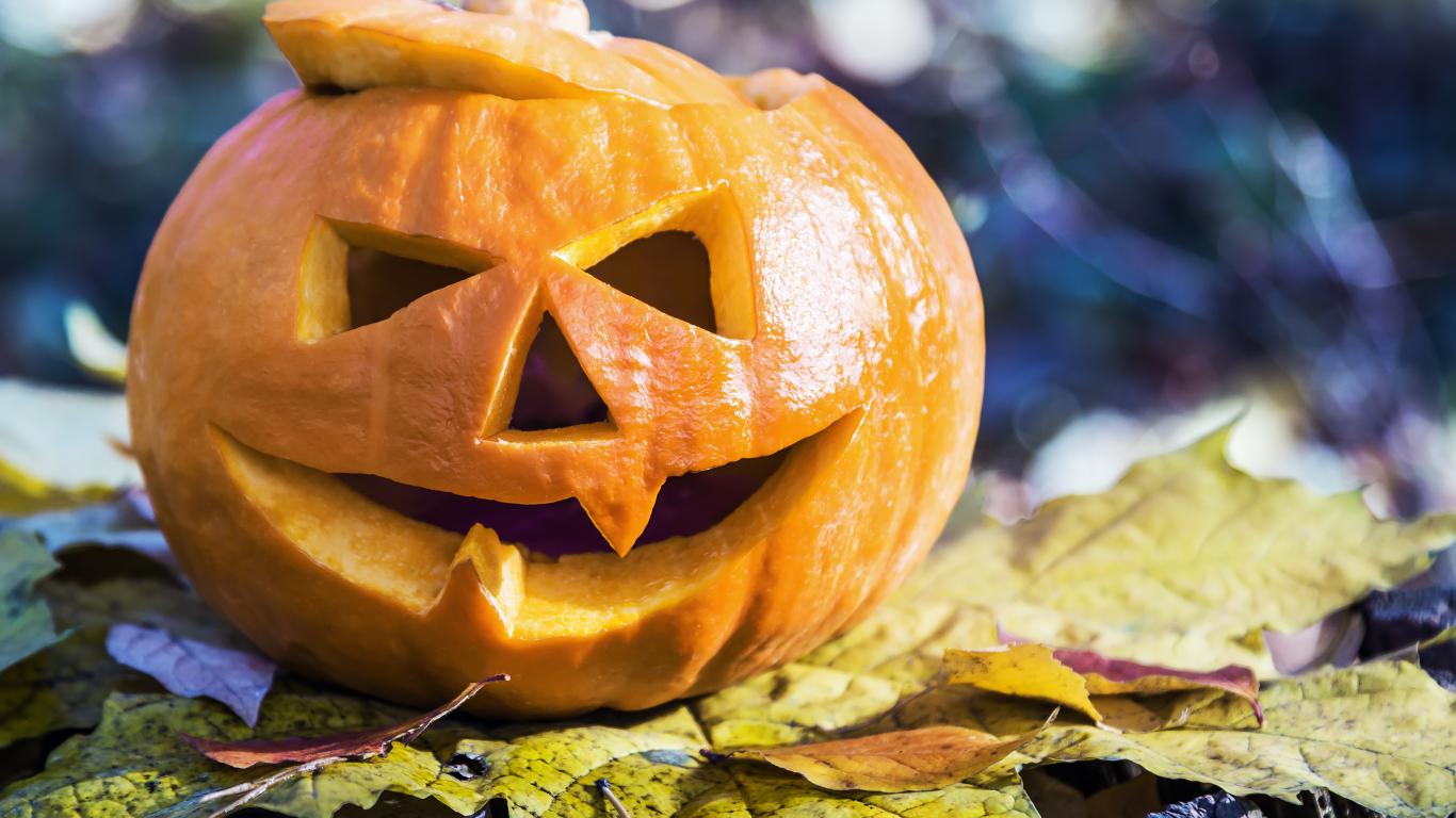 Обои Тыква на Хэллоуин стоит на листке