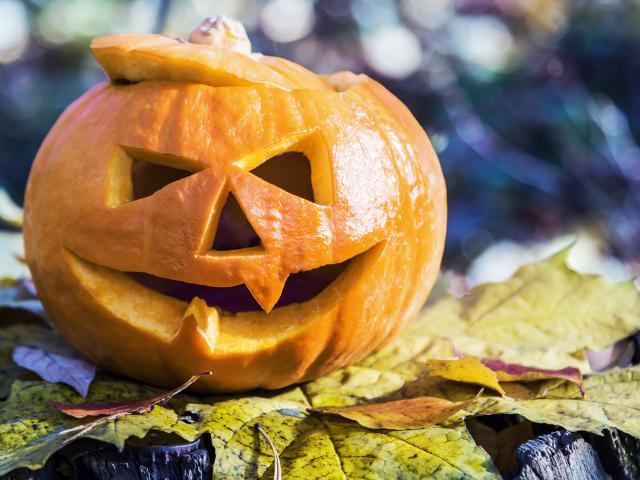 Обои Тыква на Хэллоуин стоит на листке