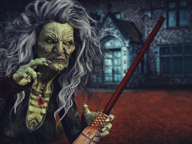 Обои Старая ведьма с метлой на праздник Хэллоуин