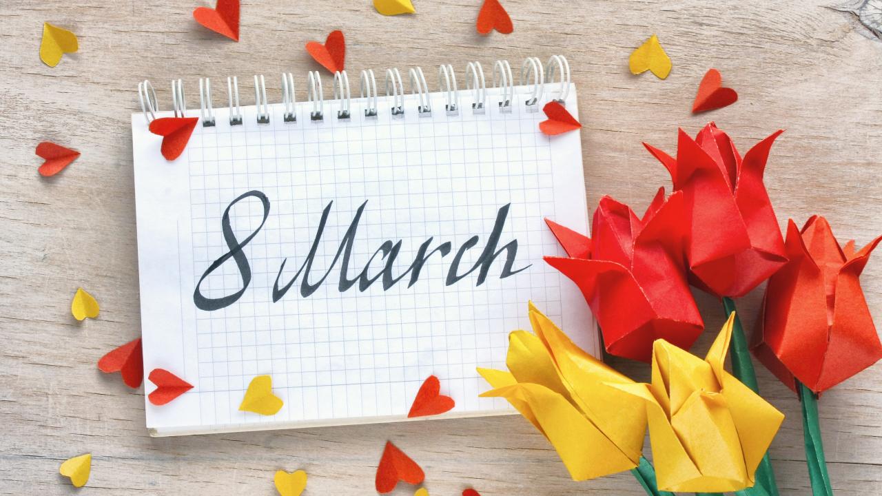 Обои Тюльпаны оригами с блокнотом на 8 марта