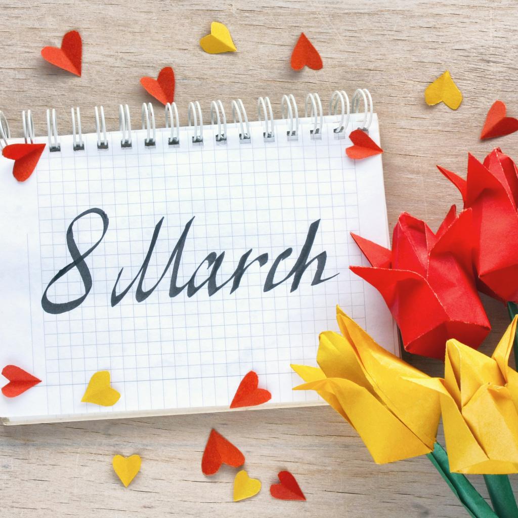Обои Тюльпаны оригами с блокнотом на 8 марта