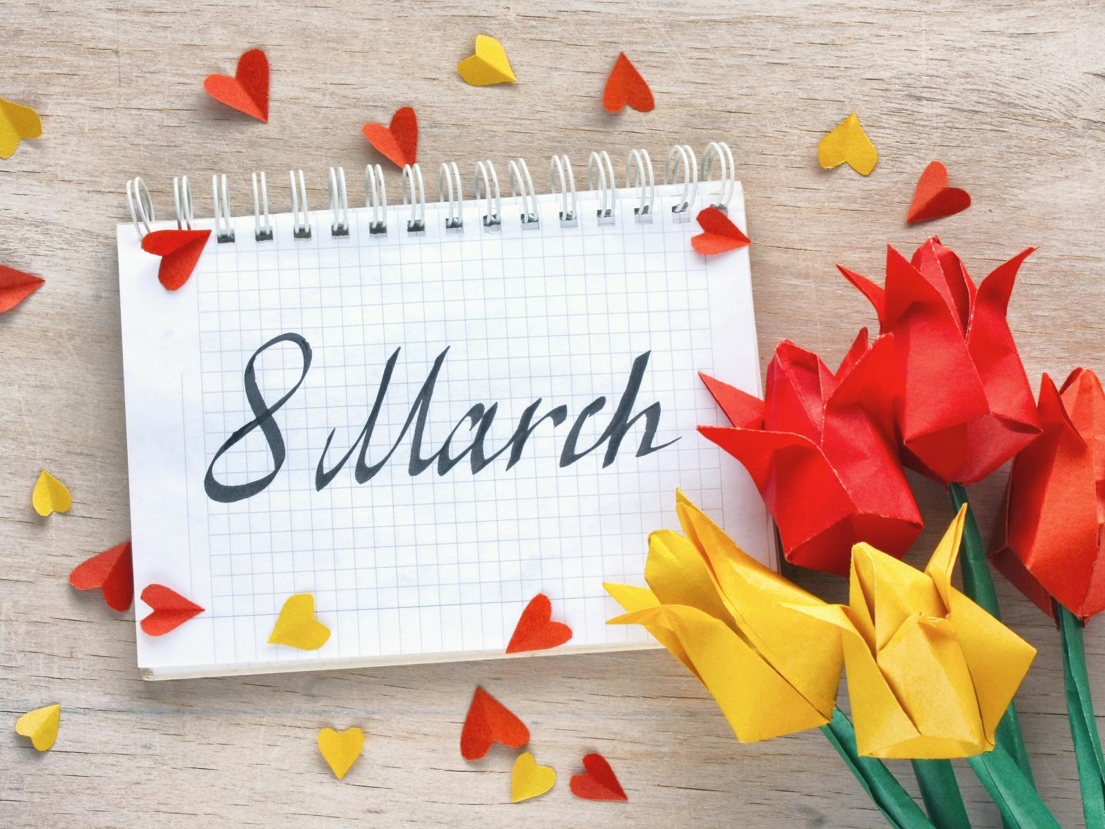 Обои Тюльпаны оригами с блокнотом на 8 марта