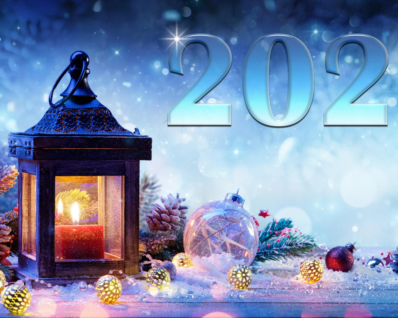 Обои Фонарь и игрушки на Новый год 2021