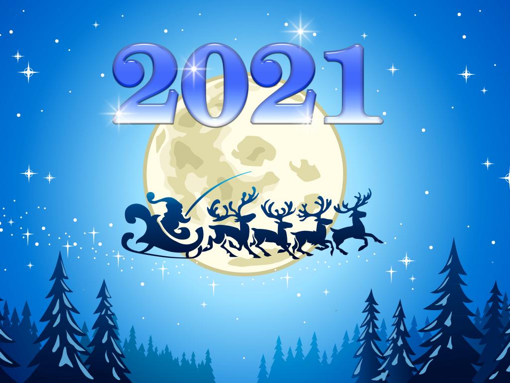 Обои Санта Клаус на голубом фоне на Новый год 2021