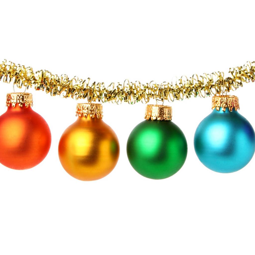 Обои Разноцветные елочные шары на белом фоне