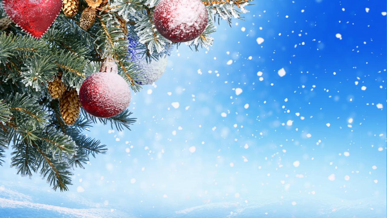 Обои Елочная ветка с игрушками, Шаблон поздравительной открытки