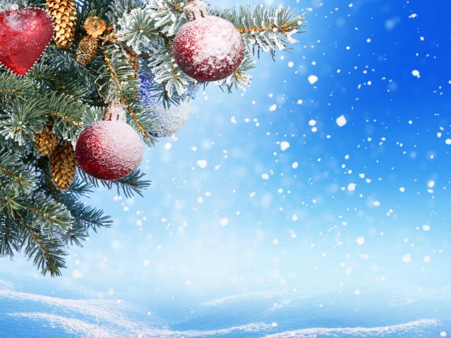 Обои Елочная ветка с игрушками, Шаблон поздравительной открытки