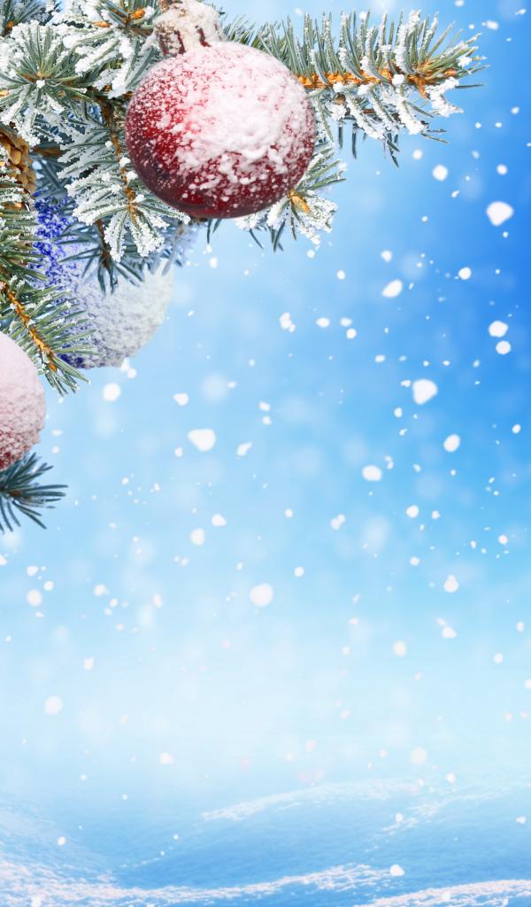 Обои Елочная ветка с игрушками, Шаблон поздравительной открытки