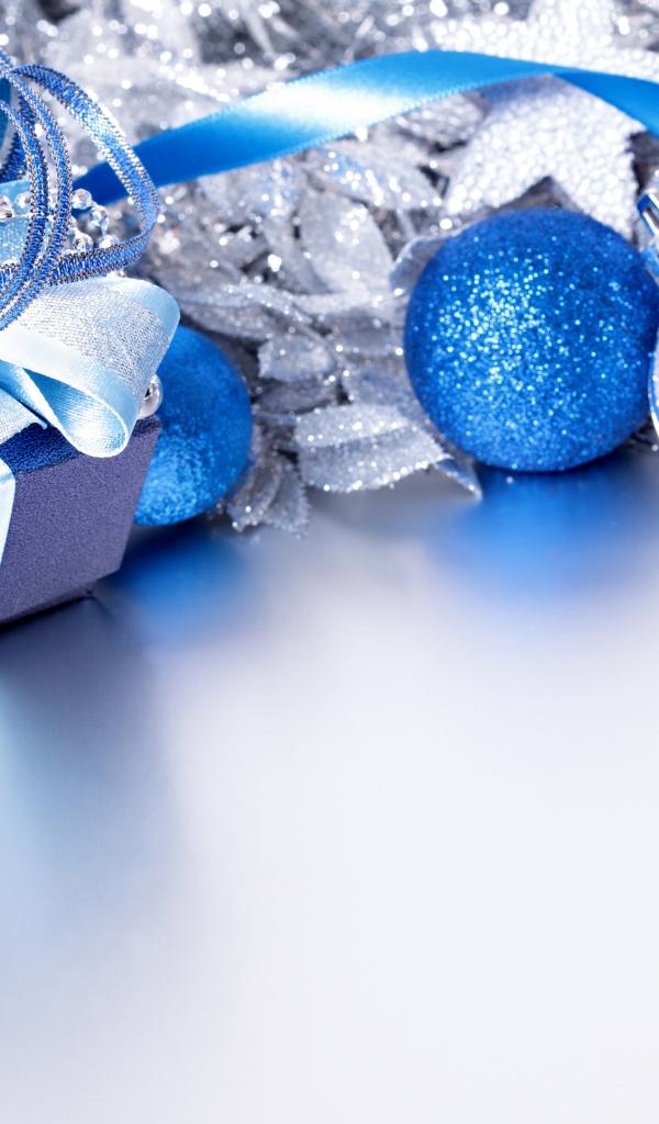 Обои Елочные игрушки с подарком, Шаблон поздравительной открытки