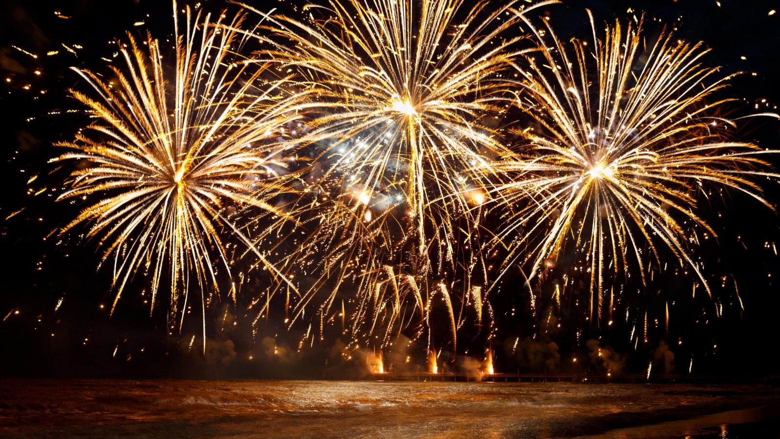 Обои Красивые яркие цифры 2019 на фоне салюта