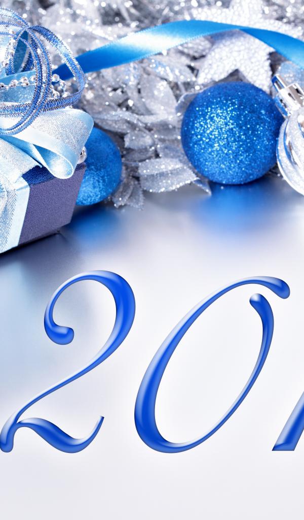 Обои Голубые цифры 2019 на сером фоне с новогодними игрушками на Новый год свиньи 2019